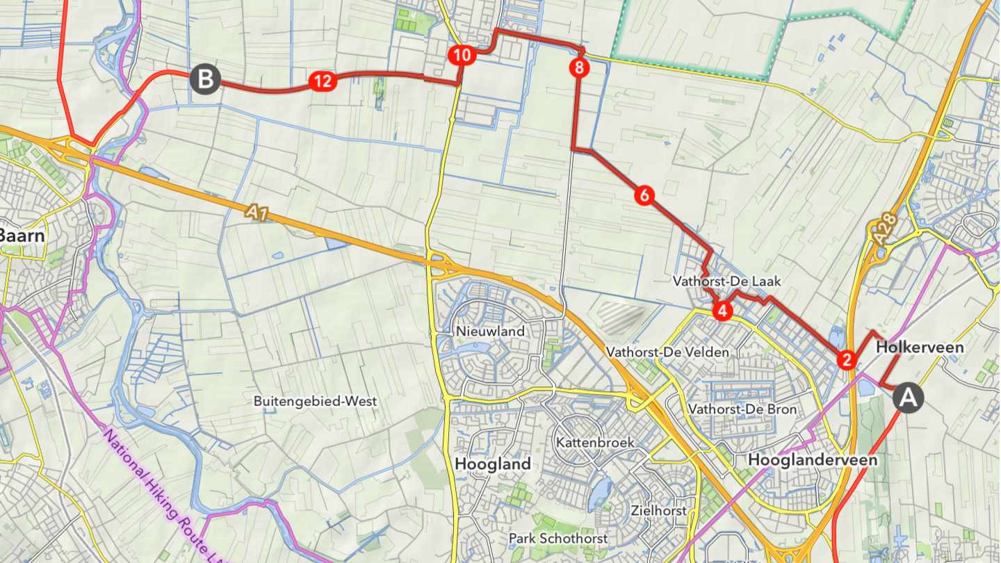 Met de app MapOut kun je gemakkelijk de afstand meten tussen bepaalde punten op je route. Zo bepaal je snel je etappes.