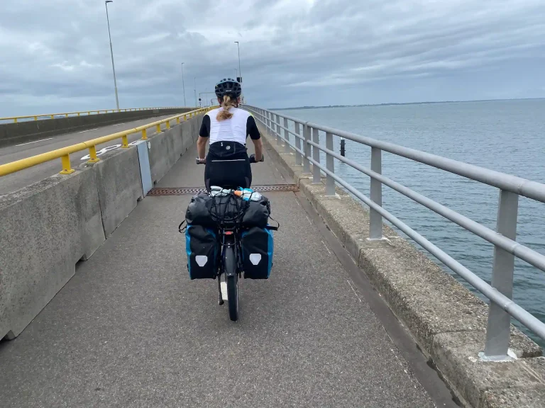 De derde dag start je direct met 5022 meters trappen over de Zeelandbrug. Het is indrukwekkend hoe je als fietser over deze brug rijdt met rechts uitzicht over de Neeltje Jans. Water, water en nog eens water.
